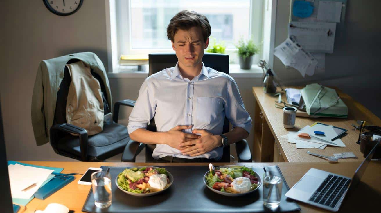 Picture this. Monday: you grab your usual salad, eat at your desk, answer three emails while chewing, and rush into a tense afternoon meeting. You end the day distended and uncomfortable, jeans digging into your waist. Tuesday: same salad, this time eaten slowly with a colleague on a sunny bench, ten minutes of actual conversation, no laptop in sight.